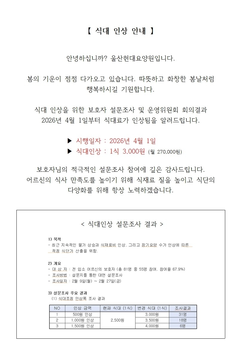 2026년 2분기 부터 식대인상 건